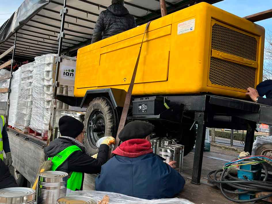 El sábado, pese a la nieve encontrada en Burgos, pudimos cargar en Pamplona un nuevo camión para Ucrania. 23.600 kg de ayuda humanitaria gracias al compartir de Ayuda Contenedores, la Orden del Temple, y nuestra parroquia junto Acoger y Compartir. En el aniversario del inicio de la guerra se aviva el deseo de que llegue su final. Ante la dureza del invierno ucraniano, una alegría poder aportar un generador eléctrico.