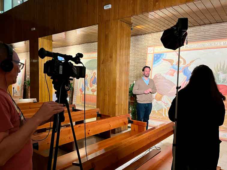 Vinieron de TVE – 2 a nuestra parroquia para grabar un programa sobre los paneles bíblicos. No sabemos cuál fue el resultado, será en marzo cuando lo lancen. Por ahora, un par de fotos !!! Se emitirá en “últimas preguntas” !!!