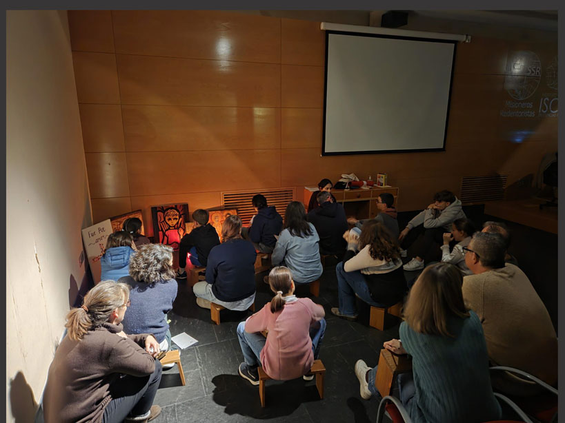 El viernes por la tarde fue la catequesis del grupo de post-comunión a partir de los paneles bíblicos. Gracias, Leandro !!!